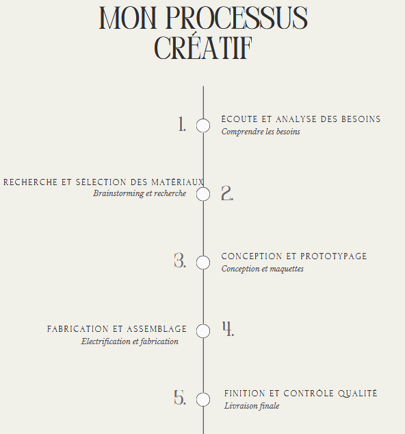 Après une formation spécialisée à Versailles et des collaborations avec des maisons comme Abat-Jour Déco et la brasserie Café Montparnasse, je poursuis aujourd’hui cette aventure artisanale avec la même exigence et la même passion pour le geste juste et la lumière.
