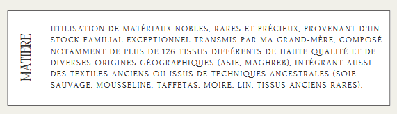 Formée à la couture et aux beaux tissus, j’ai choisi de me consacrer à l’artisanat d’art, en héritant des gestes rares et des matières précieuses de ma grand-mère, abat-jouriste dans le sud-ouest de la France.